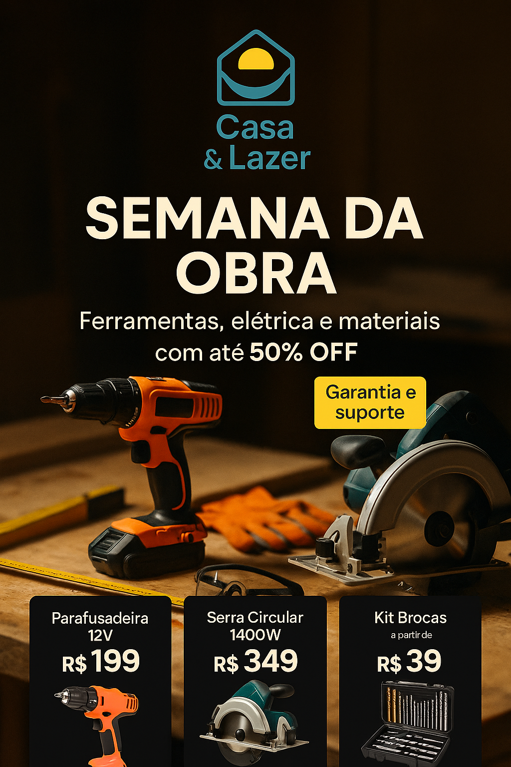 Variedade inteligente: do básico ao premium para casa, construção, jardinagem, praia e camping.